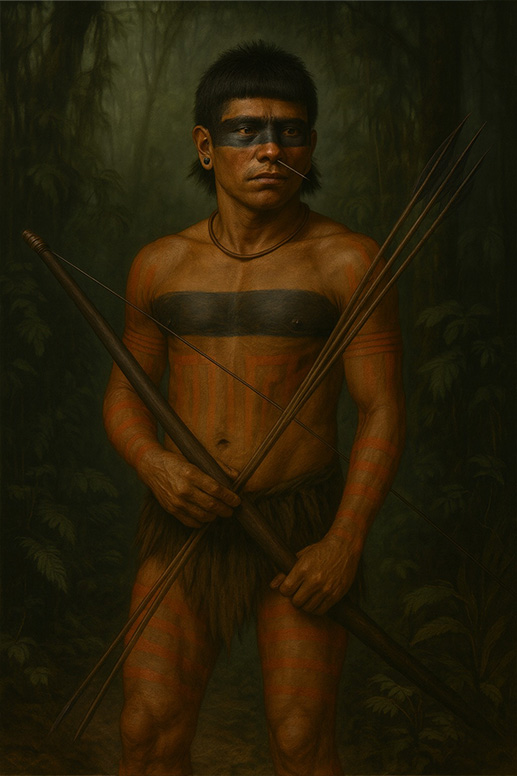 Povo do arco e da bravura, de passos vigorosos e olhos atentos, os Botocudo vivem onde o rio e a mata se entrelaçam, na bacia do Rio Doce, coração do Espírito Santo. Admirados e temidos, foram alvo de muitos olhares curiosos sobre seus modos de viver. Durante muito tempo pensaram ser eles os únicos canibais em terras capixabas. Mas não. Por conta de tanta incompreensão receberam pena de morte; a Guerra Justa. Apesar do genocídio documentado, os Botocudo resistiram, com o corpo pintado, seu templo sagrado de ancestralidade. Da madeira fizeram adornos, do bambu flautas e com mão firme, altivez e força, mantiveram a dignidade sem se curvar ao colonizador.