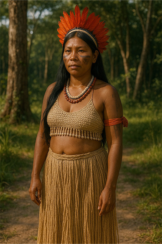 Povo do caminho e da palavra, os Guarani caminham levando nos pés o pó das estradas antigas e nos olhos o brilho da yvy marã e’ỹ, a terra sem males, onde o coração repousa e a alma se refaz. Sua morada é o som do maracá que desperta os deuses e do canto que faz o dia nascer. Vivem onde a floresta fala, o rio pensa e o fogo conta histórias. A aldeia é círculo, o corpo é templo, a palavra é semente. O tempo gira em torno do opy, casa do espírito e da memória, onde o som do tambor fertiliza a terra. Quando a noite chega e os ancestrais descem nas fagulhas da fogueira, os Guarani reforçam os vínculos poderosos que existem entre a Terra e o Céu.